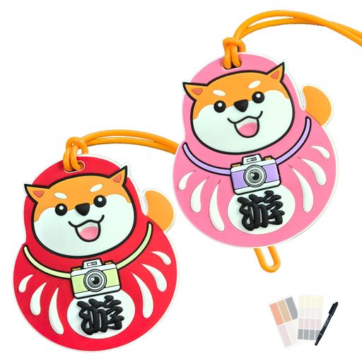 Oumino荷物タグネームタグ2個セットスーツケースタグ出張用タグ番号札バッグ用ネームタグ船荷物タグトラベル用旅行番号札ラベルシール2枚とサインペン1本付き軽量紛失防止可愛い(柴犬… 2,320 ~