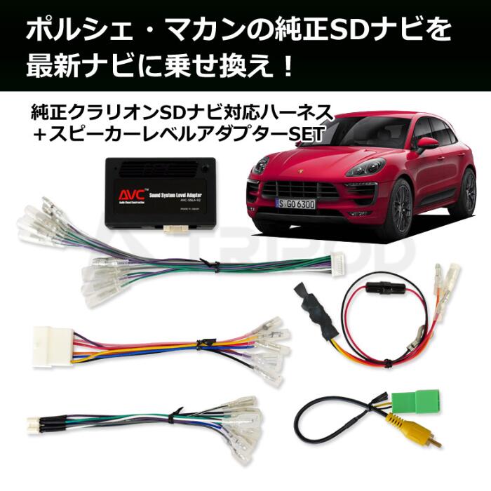 適合車種 メーカー 車種 年式 備考 PORSCHEポルシェ MACANマカン(95B) 2014(H26)/4〜2016(H28)/2ディーラー車 ※Clarion製SDナビ(後期モデル)装着車 ※適合は必ず画像2枚目を参照頂き現車確認下さい。 (センターに「現在地」ボタン) キット構成 ・電源ハーネス ・スピーカーハーネス ・スピーカーレベルアダプター ・バックカメラ変換ハーネス(RCAオスタイプ) ・ACC電源アダプター ・配線資料 商品特徴 ポルシェ マカン(95B)のクラリオンSDナビを最新ナビに交換する際に必要になる ハーネスキットです。 フェイスパネルや取付金具等は付属しておらず取付説明書もなく配線資料のみと なりますので予めご了承下さい。 ポルシェに慣れた取付専門業者様が販売対象となります。 ※リヤビューカメラを、市販ナビゲーションに接続するためのケーブル(RCAオスタイプ)も 付属していますが、車両により対応しない場合もあります。 ※Panasonic製カーナビ/カーAV Stradaシリーズ2023年モデル(一部、2022年中の販売商品も 含みます。 )以降にはお使いいただけません。 注意事項 ・メーカーラインでのSDナビゲーションシステム(クラリオン製)装着車専用です。 ・メーカーライン装着のETC車載器は、使用できなくなります。 ・純正ナビを取り外すためそれに伴う機能は使用できなくなくなります。 ・車両の仕様や装備によっては本製品が対応しない場合がございます。 ・取り付けについての技術サポートは一切おこなっておりませんので、 ポルシェに慣れた専門業者様が販売対象となります。 ・上記記製品は仕様およびデザインを予告なく変更する場合があります。 ・そのため、掲載画像と商品が異なることもございます。 ご了承下さい。 ポルシェ マカン(95B)クラリオンSDナビ(後期モデル)装着車用 ハーネスキット(スピーカーレベルアダプターSET) AVC2D95BMSD2HA ポルシェ マカン(95B)クラリオンSDナビ(後期モデル)装着車用 ハーネスキット(スピーカーレベルアダプターSET) 28,600 ~
