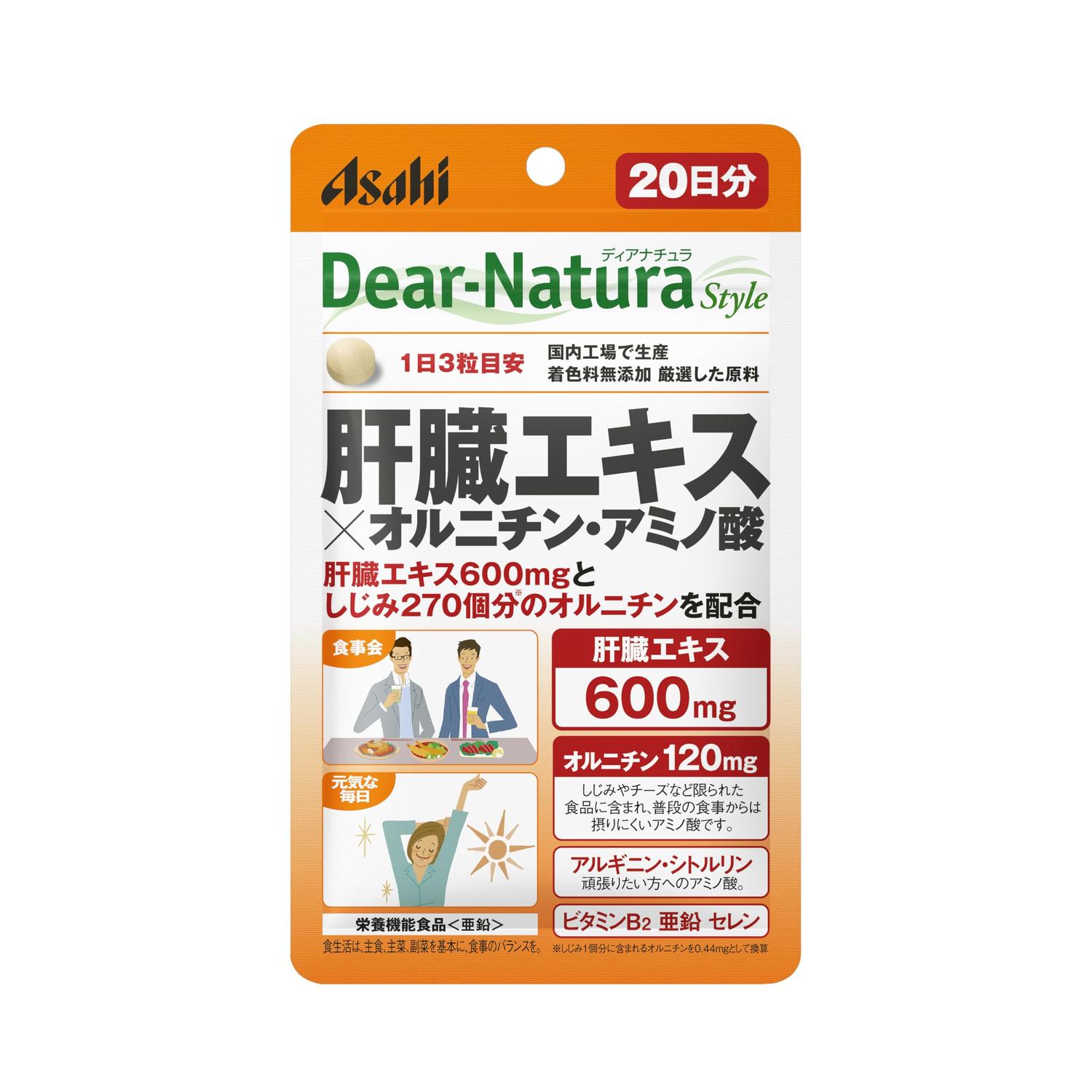 商品情報商品の説明商品紹介 ●商品特長● 1.肝臓エキスを600mg配合 2.しじみ270個分※のオルニチンを配合 ※しじみ1個に含まれるオルニチンを0.44mgとして換算 3.サプリ初心者でも分かりやすくイラストでシーン提案。自分向けの商品として捉えてもらい、興味・購入喚起 4.(香料・着色料・保存料)無添加だから、毎日安心 5.国内自社工場での一貫管理体制 6.トライアル・リピートしやすい1日47円の価格設定 ●成分● 1日目安 3粒あたり 肝臓エキス:600mg、オルニチン:120mg、アルギニン:10mg、シトルリン:10mg、亜鉛:8.8mg、ビタミンB2:1.4mg、セレン:28μg ●ターゲット● 30代~50代の男女 夜のお付き合いが多い方、朝をスッキリ迎えたい方 原材料・成分 豚肝臓エキス末(国内製造)、オルニチン、セレン含有酵母末、シトルリン/グルコン酸亜鉛、セルロース、ステアリン酸Ca、アルギニングルタミン酸塩、ケイ酸Ca、セラック、V.B2 使用方法 【摂取方法】1日3粒を目安に、水またはお湯とともにお召し上がりください。 安全警告 【摂取上の注意】●本品は、多量摂取により疾病が治癒したり、より健康が増進するものではありません。●亜鉛の摂り過ぎは、銅の吸収を阻害するおそれがありますので、過剰摂取にならないよう注意してください。●1日の摂取目安量を守ってください。●乳幼児小児は本品の摂取を避けてください。●原材料名をご確認の上、食物アレルギーのある方はお召し上がりにならないでください。●妊娠授乳中の方は本品の摂取を避けてください。●治療を受けている方、お薬を服用中の方は、医師にご相談の上、お召し上がりください。●小児の手の届かないところに置いてください。●体調や体質によりまれに身体に合わない場合があります。その場合は使用を中止してください。●ビタミンB2により尿が黄色くなることがあります。●原料由来の斑点が見られたり、色むらやにおいの変化がある場合がありますが、品質に問題ありません。●開封後はお早めにお召し上がりください。●品質保持のため、開封後は開封口のチャックをしっかり閉めて保管してください。◆本品は、特定保健用食品と異なり、消費者庁長官による個別審査を受けたものではありません。豚肝臓エキスとオルニチンアルギニンシトルリンのアミノ酸3種を配合したサプリメントです。主な仕様 商品サイズ(幅x奥行x高さ):9.5cmx1.0cmx16.0cmbr内容量:60粒無着色・保存料無添加選び抜いた原材料を使用国内工場で生産 【送料無料】ディアナチュラスタイル 肝臓エキスxオルニチン・アミノ酸 60粒 (20日分) アサヒ サプリ Dear-Natura 国内工場で生産 パウチ サイズ:60粒 (x 1) 1,406 ~