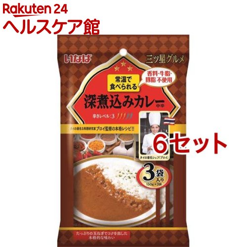 お店TOP>フード>加工食品・惣菜>レトルト食品>カレー(レトルト)>いなば 三ツ星グルメ 深煮込みカレー 中辛 (150g*3袋入*6セット)【いなば 三ツ星グルメ 深煮込みカレー 中辛の商品詳細】●玉ねぎ、鶏肉が溶け込んだ美味しさのカレーシリーズ。 ●レストランのカレーのような深い味わいです。 ●牛脂・豚脂を使っていないのでさらっとした仕上がりです。 【品名・名称】カレー【いなば 三ツ星グルメ 深煮込みカレー 中辛の原材料】ココナッツミルク、玉ねぎ、カレーペースト、砂糖、鶏肉、トマトペースト、大豆油、カレー粉、みそ、醤油、唐辛子、酵母エキス、食塩、野菜エキス/増粘剤(加工デンプン)、調味料(アミノ酸等)、(一部に小麦・大豆・鶏肉を含む)【栄養成分】1食分(150g)当りエネルギー:179kcal、たんぱく質:5.1g、脂質:10.2g、炭水化物:16.7g、食塩相当量:2.4g【アレルギー物質】小麦、大豆、鶏肉【保存方法】常温保存【原産国】タイ【発売元、製造元、輸入元又は販売元】いなば食品※説明文は単品の内容です。 リニューアルに伴い、パッケージ・内容等予告なく変更する場合がございます。 予めご了承ください。 ・単品JAN:4901133593147いなば食品421-3104 静岡県静岡市清水区由比北田114-10120-178390広告文責:楽天グループ株式会社電話:050-5577-5042[インスタント食品] いなば 三ツ星グルメ 深煮込みカレー 中辛(150g*3袋入*6セット) 2,731 ~