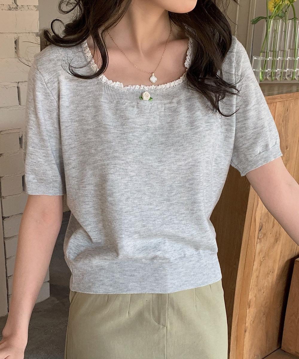 スクエアネックパール付き半袖ニットトップス/バニコ(Banico) 3,619 ~