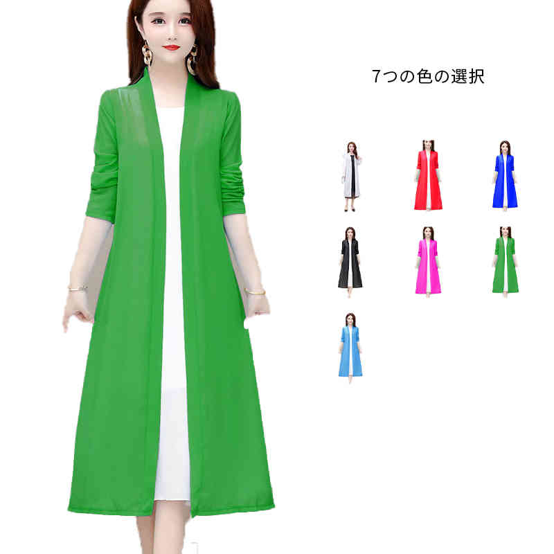 送料無料 カーディガン 薄手 レディース 春 夏 長袖 グリーン ロングカーディガン ゆったり UVカット サマーカーディガン 襟付き 無地 シンプル 可愛い きれいめ 冷房対策 体型カバー 涼しい 通気性 着心地 7色選べる 大きサイズ 2,780 ~