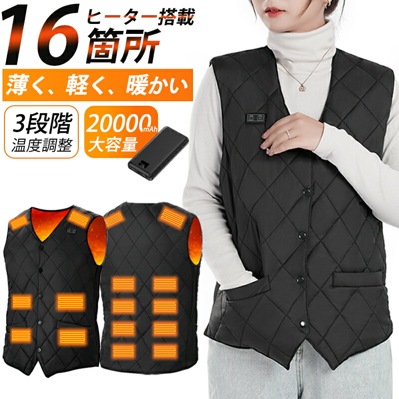 【楽天1位|爆安LINE追加→4,680円】 電熱ベスト バッテリー 20000mAh 16枚繊維ヒーター ヒーターベスト おしゃれ レディース メンズ インナー ヒートジャケット 速暖 3段階温度調整 電熱ジャケット 発熱ベスト 電熱ウェア USB Vネック 洗える 3,980 ~