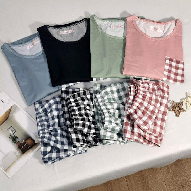 寝巻き カットソー プルオーバー ドロップショルダー■セット内容?2点セット?トップス?パンツ お気に入りの部屋着を見つけてお部屋でのんびりリラックスお部屋でのリラックスタイムはもちろん、リモート飲みや女子会でお揃いで着てもかわいいシンプルデザイン。 薄手で程よい厚みの生地感なので、気温を把握しにくい旅行にも◎ロンTタイプのゆったりシルエット。 締め付け感なく、優しく体型カバーもしてくれます。 無地とチェックの組み合わせがかわいいデザイン。 ウエスト部分がゴムだから窮屈感もなくお腹周りもラクな穿き心地。 首元すっきりさっと着られる裾をきゅっと絞ったデザインがかわいい ルームウェア レディース 可愛い 長袖 上下セット 春秋 パンツ トップス セットアップ ゆったり パジャマ 部屋着 3,000 ~