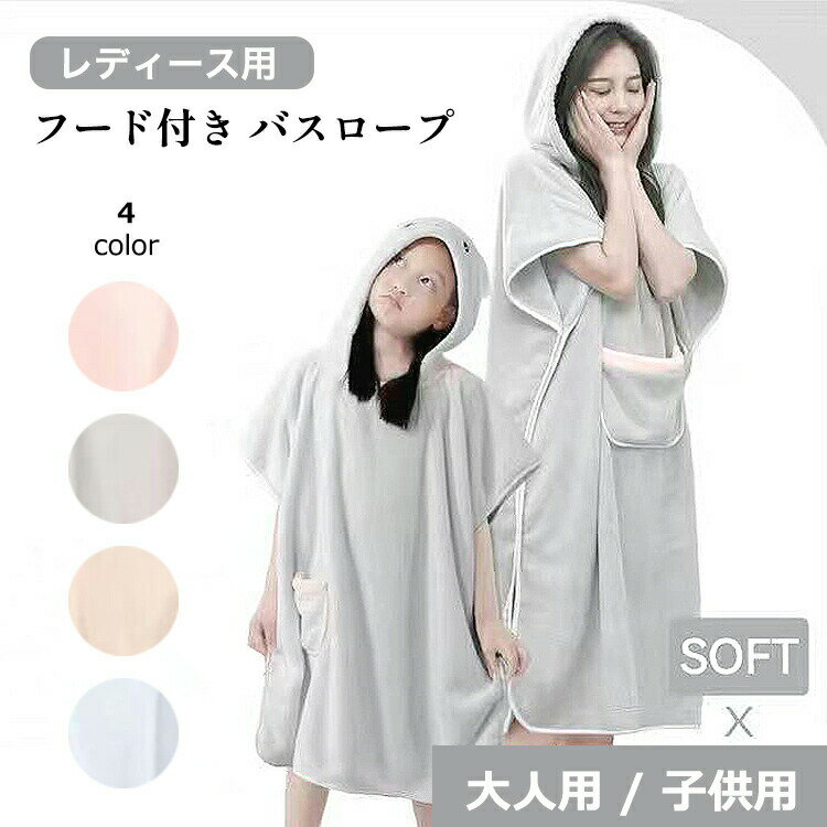 【お風呂上がり】【吸水・大判】【春・秋・冬】フード付きのプルオーバータイプで、お風呂上りにバッと被るだけ。 ゆったりシルエットのフレンチスリーブと首元のリボンが女性らしさを引き立てるデザイン♪お風呂上がりにさっとかぶって、ほてりを冷ましながらボディケアもらくちん♪ふわふわやらかな肌触りと高い吸水性が特徴的なマイクロファイバー素材を使用。 海やプール、ジムでの着替えに便利なので、季節を問わずお使いいただける大人気商品です!ワンピースタイプなので、ずれ落ちたりせず、赤ちゃんや小さなお子さんと入浴するママにも♪ サイズ F サイズについての説明 サイズ:F 105*80cm ※実寸はメジャー採寸の為、若干の誤差が生じる場合があります。 素材 ポリエステル 色 ピンク ブルー カーキ グレー 備考 ●サイズ詳細等の測り方はスタッフ間で統一、徹底はしておりますが、実寸は商品によって若干の誤差(1cm?3cm )がある場合がございますので、予めご了承ください。 ●製造ロットにより、細部形状の違いや、同色でも色味に多少の誤差が生じます。 ●パッケージは改良のため予告なく仕様を変更する場合があります。 ▼商品の色は、撮影時の光や、お客様のモニターの色具合などにより、実際の商品と異なる場合がございます。 あらかじめ、ご了承ください。 ▼生地の特性上、やや匂いが強く感じられるものもございます。 数日のご使用や陰干しなどで気になる匂いはほとんど感じられなくなります。 ▼同じ商品でも生産時期により形やサイズ、カラーに多少の誤差が生じる場合もございます。 ▼他店舗でも在庫を共有して販売をしている為、受注後欠品となる場合もございます。 予め、ご了承お願い申し上げます。 ▼出荷前に全て検品を行っておりますが、万が一商品に不具合があった場合は、お問い合わせフォームまたはメールよりご連絡頂けます様お願い申し上げます。 速やかに対応致しますのでご安心ください。