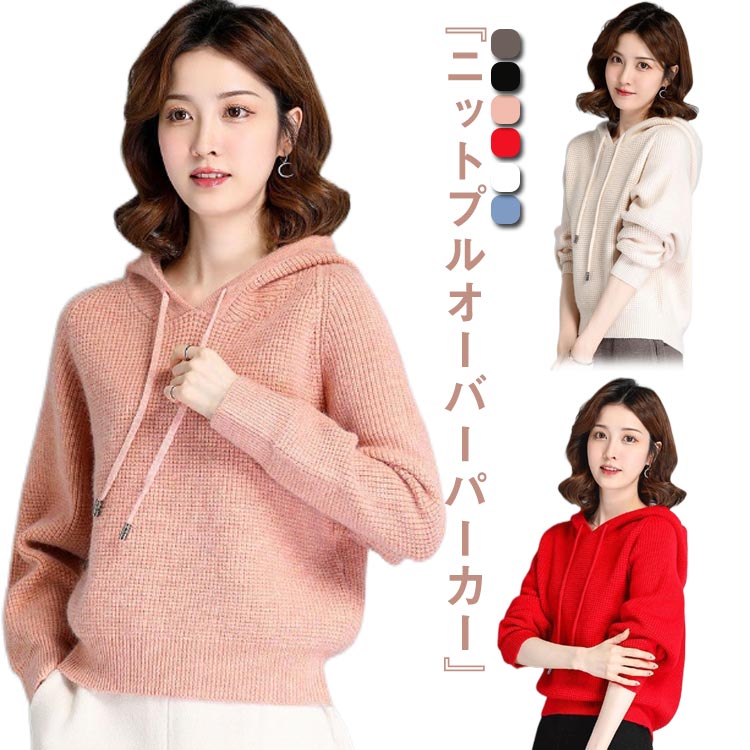 ニットパーカー レディース ニットセーター フード付き ニット ラグランスリーブ パーカー パーカ ゆったり セーター ラグラン袖 プルパーカー ニットトップス ベージュ グレー ネイビー ブラウン 5,107 ~