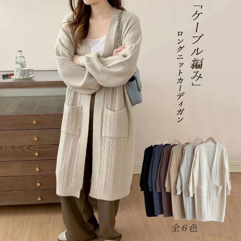 ロングニットカーディガン ニットカーディガン ケーブル編み 秋冬 長袖 レディース トップス 羽織り ニット カーディガン ロング丈 膝丈 ノーカラー アウター 厚手 カジュアル 体型カバー 大きいサイズ ゆったり おしゃれ 4,184 ~