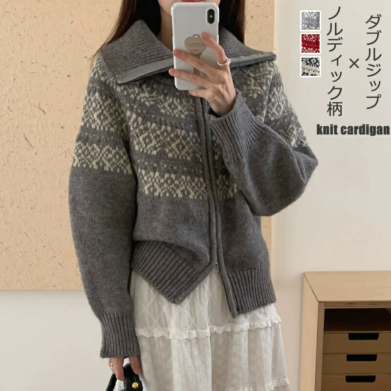 ニットカーディガン ダブルジップ ニット ノルディック柄 トップス レディース ニットソー 羽織り Wジップ 防寒 ジップアップ 長袖 ショート丈 ニット カーディガン アウター ニットパーカー セーター 折り襟 暖かい 着回し カジュアル 厚手 節日 秋 冬 送料無料 20代 30代 40代 50代 【商品情報】 ■サイズ(cm) 表示サイズ:フリーサイズ 総長:51cm バスト:100cm ■備考 【素材】アクリル 【セット内容】ニット単品 【裏地】なし 【伸縮性】あり ※寸法は手測りなので若干誤差がございますが、ご了承くださいませ。 ※お品物の色合いは、写真撮影、パソコン画面表示等の環境の違いにより、若干異なる場合がございますので予めご了承くださいませ。