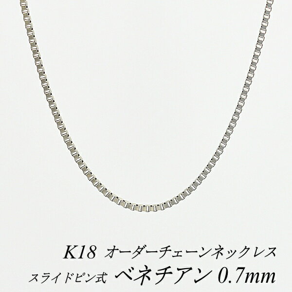 18金 ネックレス K18 ネックレス k18 チェーン 18金 K18 18K ベネチアンチェーン 0.7mm スライドピン式 ネックレス チェーン 長さオーダーチェーン 40cm〜120cm ホワイトゴールド 180日間お修理保証 105,922 ~