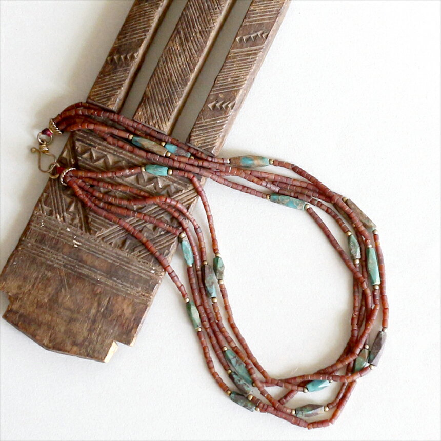 【10%OFFクーポン対象】ターコイズとアガット5連のネックレス ブラウンとグリーン 19,800 ~