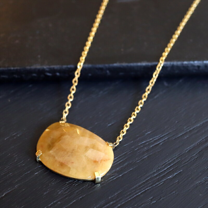 サファイアシルバーネックレス キャメル 爪留め18Kゴールドフィールド 天然石 トルコジュエリーサイズチェーンの長さ:約47(+アジャスター 4)cmトップのサイズ:約1.5x2cm材 質サファイア、シルバー925(18Kゴールドフィールド)制 作トルコ・イスタンブールカラーキャメルラフにカットされた珍しいキャメル色のサファイアのネックレスです。 爪留めされた薄いサファイアに、丁寧にローズカットが施されているため、揺れるたび光を反射し美しく輝きます。 シルバーチェーンにゴールドフィールド加工がされているので上品な輝きもあり、黄みがかったこっくりとした色の石とのバランスもよくおすすめのネックレスです。 18金ゴールドフィルドとは、18金を本体の金属に高熱で圧着させたもので、一般的な金メッキ(ゴールドプレート)よりも金が剥がれにくく厚みがあります。 ※写真の現品をお届けします。 ARSAMEIA, Turkish Jewelry, Color stone, Oval, labradlite, イスタンブールジュエリー, トルコジュエリー, シルバージュエリー,ゴールドコーティング,ラフカット天然石, 上質,ガラタバザール,ハンドメイド,カラーストーン,ベージュトーン,爪留め,きれいめ,大人女子,一点物, 動画あり 【10%OFFクーポン対象】サファイアシルバーネックレス キャメル 爪留め18Kゴールドフィールド 天然石【現品お届け】 トルコジュエリー 11,000 ~
