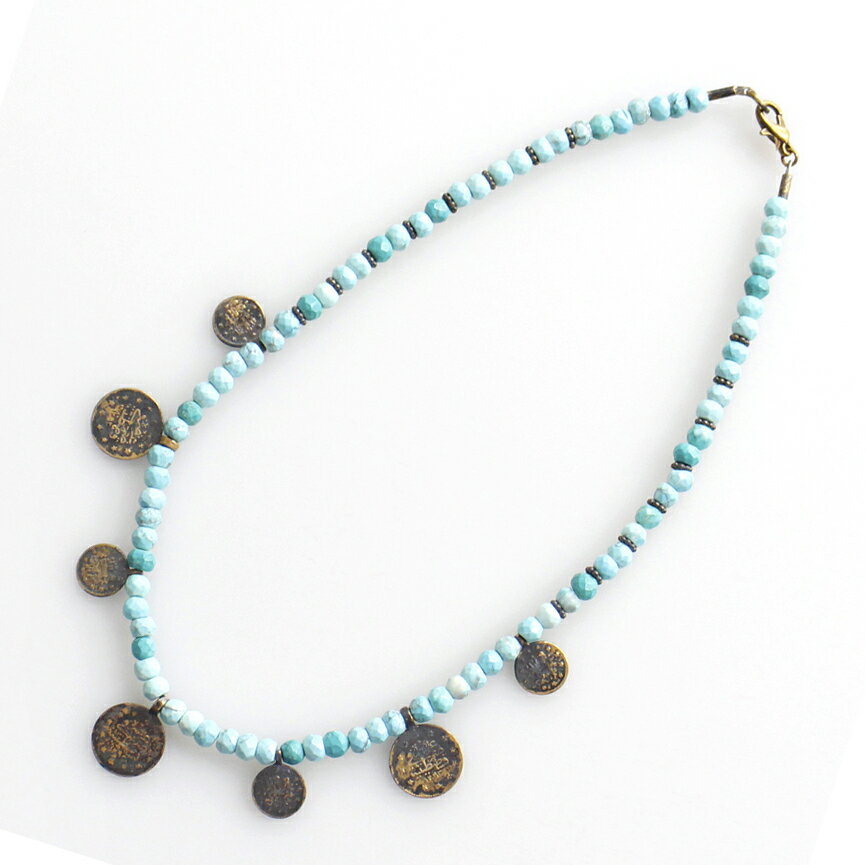 ターコイズ&コインのネックレス天然石 ビーズネックレス 15,400 ~