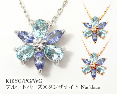 *材質 ・K10イエローゴールド/ピンクゴールド/ホワイトゴールド *石仕様 ・天然トパーズ(ブルートパーズ) 4x3mmペアシェイプカット 3石 ・天然タンザナイト 4x2mmマーキスカット 3石 *全体仕様 ・トップ部:縦10.6×横10.3mm ・トップと同素材製0.85mm幅カットアズキチェーン40cm (約37cmとして使用可能) ・トップ取外し:不可 *全体重量 ・約1.7g 関連商品 こちらも要チェック★ ブルートパーズ タンザナイト ネックレス K10YG/PG/WG フラワーモチーフ 【プレゼント ギフト】 ▼ 51,700 ~