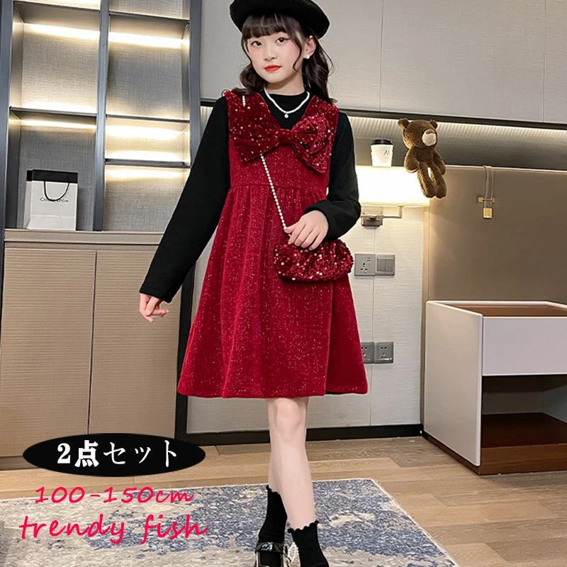 ジャンパースカート ワンピース 女の子 赤 ドレス スーツ フォーマル 発表会 2点セット キッズ 長袖 厚手 子供 おしゃれ 入学式 卒業式 可愛い リボン レッド 秋冬 結婚式 100 110 120 130 140 150cm セットアップ トップス 通園 入園式 通学 プレゼント ブラック クリスマス 4,093 ~