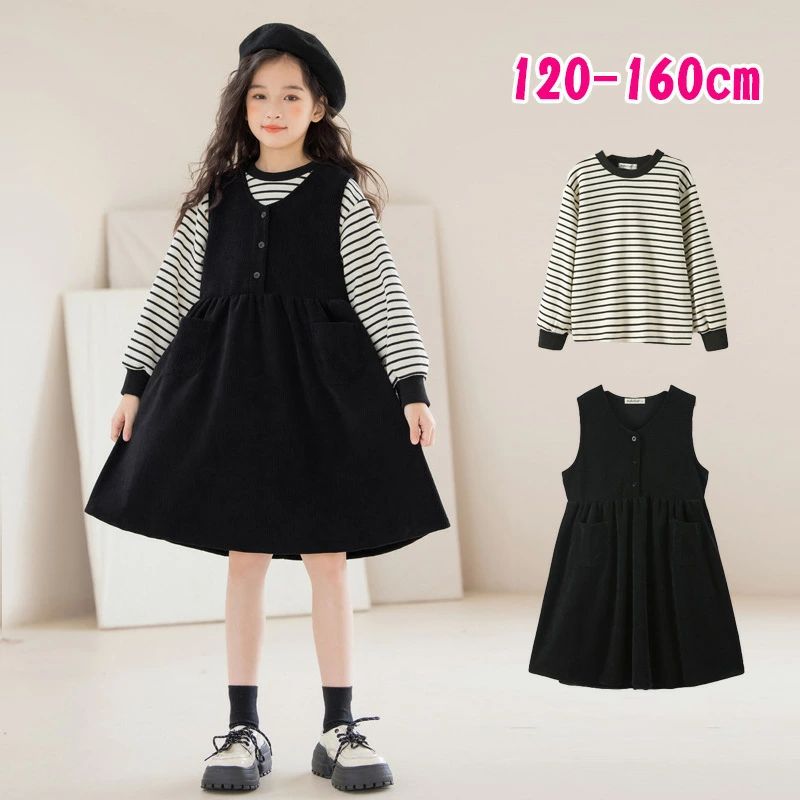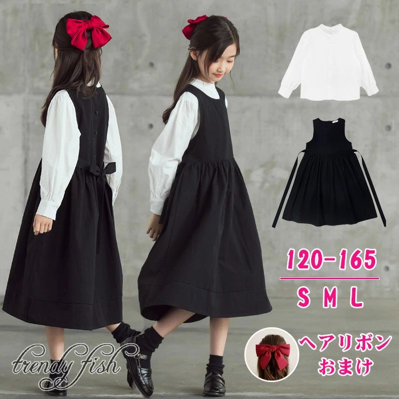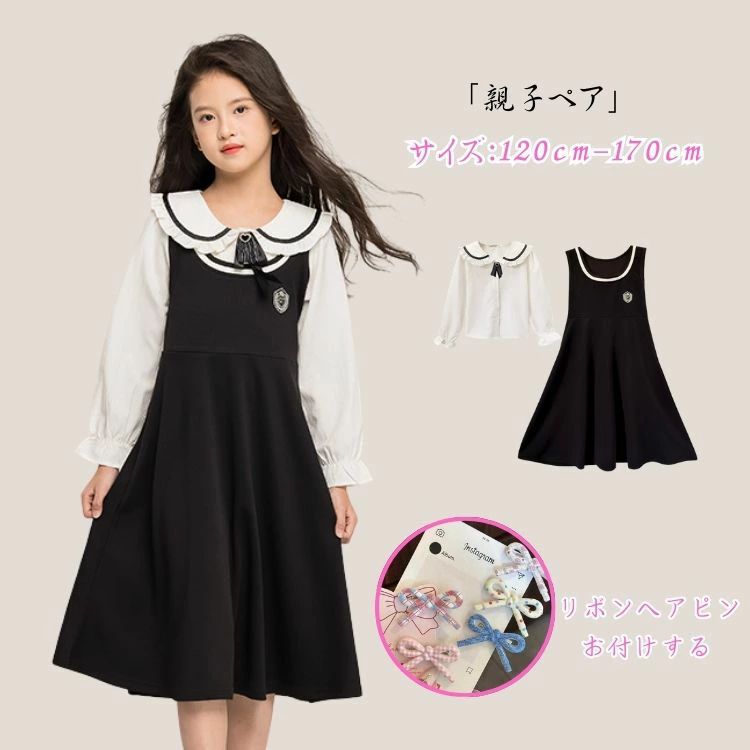 女の子 ワンピース ロングワンピース レディース キッズ 2点セット シャツ ジャンパースカート 秋冬 長袖 おしゃれ ドレス 子供服 ジュニアワンピース フォーマ ブラック シンプル 親子服 卒業式 フォーマル 小 中 高校生 入学式 入園式 七五三 大きい サイズ 120-170cm 5,108 ~