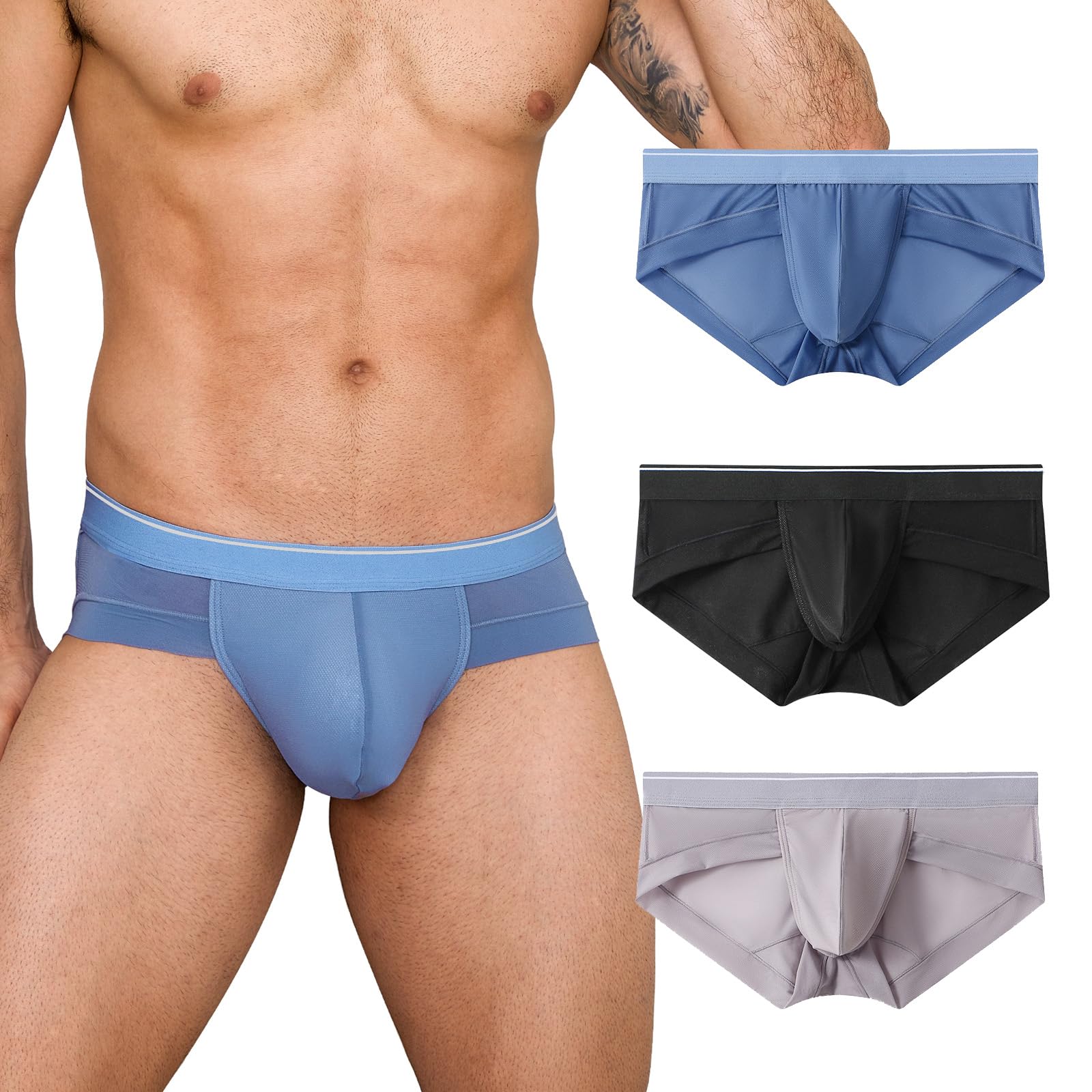 【送料無料】[PHOLEEY] メンズ ブリーフ 超薄型 メッシュ メンズ ビキニブリーフ セクシー ローライズ アイスシルク 男性 下着 パンツ 通気 速乾 透け 3枚組 色:3枚セット-A1、サイズ:M 2,299 ~