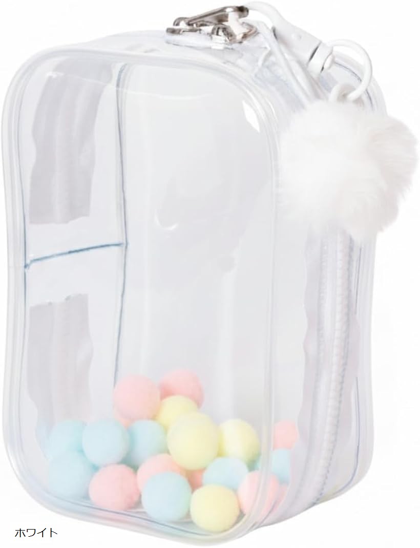 ぬいポーチ ケース 10cm ぬいぐるみ 痛バッグ 推し活 透明 クリア ポンポンボール付き (ホワイト) 1,440 ~