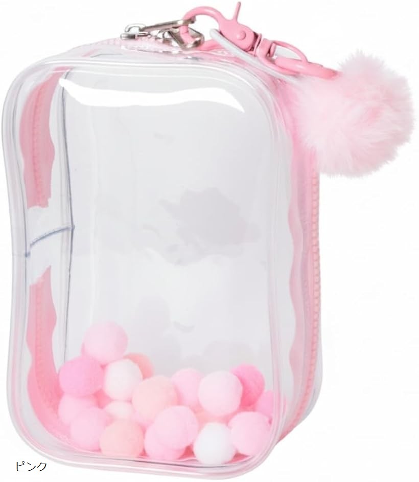 ぬいポーチ ケース 10cm ぬいぐるみ 痛バッグ 推し活 透明 クリア ポンポンボール付き (ピンク) 1,380 ~