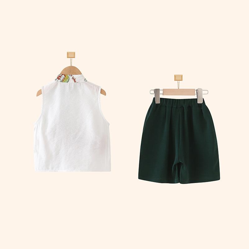 キッズ 男の子 唐装 半袖シャツ セットアップ 新中式 子供服 漢服 上下セット 綿 薄手 青 ブルー カーキ・風・素材: 綿・メイン素材含有量: 95%・厚さ: 薄手・カラー: 青藍, カーキ・対象身長: 90cm, 100cm, 110cm, 120cm, 130cm, 140cm, 150cm・種類: 子供用チャイナドレス/唐装/民族衣装・対象年齢: 中小キッズ(3~8歳, 100~140cm)・要素: セットアップ・生地加工: 柔らかい加工・実写画像: モデルなし・レベル: B類・対象性別: 男の子・メイン生地: 綿・柄: 動物・種類: 唐装 キッズ 男の子 唐装 半袖シャツ セットアップ 新中式 子供服 漢服 上下セット 綿 薄手 青 ブルー カーキ 5,467 ~