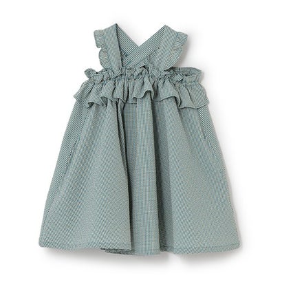 サラッとした生地感で暑い季節にぴったりのサンドレスです。 フリルとAラインシルエットを組み合わせた、女の子らしさあふれるデザイン。 Tシャツやブラウスをレイヤードすることで、さまざまなスタイリングが楽しめます。 肩ひもはボタンで調節が利くため、長く着用できるのも魅力です。 両側にポケットつき。 内側にお名前を記入できるタグがついています。 【おすすめの着用時期は春夏シーズン】【透け感】透けない【生地の厚さ】普通【伸縮性】なし【裏地】なし【ポケット】あり【製品寸法】80-90cm 総丈:52 バスト(ゴム上がり):50100-110cm 総丈:64 バスト(ゴム上がり):57120-130cm 総丈:76 バスト(ゴム上がり):63【素材】ポリエステル56%綿22%複合繊維22%(ポリエステル)【モデル】80-90cm : 【胸囲】50cm / 【総丈】52cm100-110cm : 【胸囲】57cm / 【総丈】64cm120-130cm : 【胸囲】63cm / 【総丈】76cm別カラーはこちら! オレンジ パープル(プラム) センス オブ ワンダー sense of wonder サッカーギンガムチェックサンドレス【日本製】 (グリーン) 4,872 ~