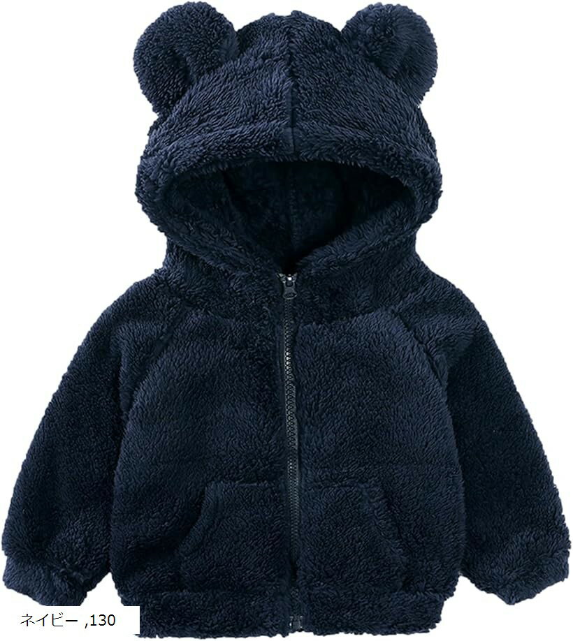 くま耳 フード アウター もこもこ ジャケット 上着 防寒 子供服 ふわふわ 保育園 通園 女の子 男の子 (ネイビー, 130) 3,380 ~