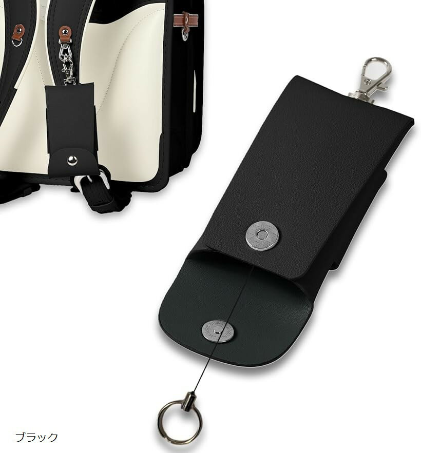 ランドセル キーケース リール テープ マグネット PVC 伸びる バイカラー かわいい シンプル ナチュラル 目立たない 安心 鍵 防止 便利 機能的 収納 小学生 キッズ 子供 (ブラック, 全長約15cmx縦約11cmx横約6cm) 1,780 ~