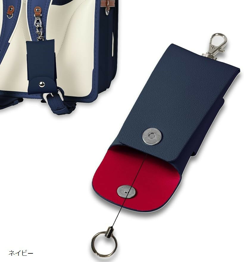 ランドセル キーケース リール テープ マグネット PVC 伸びる バイカラー かわいい シンプル ナチュラル 目立たない 安心 鍵 防止 便利 機能的 収納 小学生 キッズ ネイビー 1,780 ~