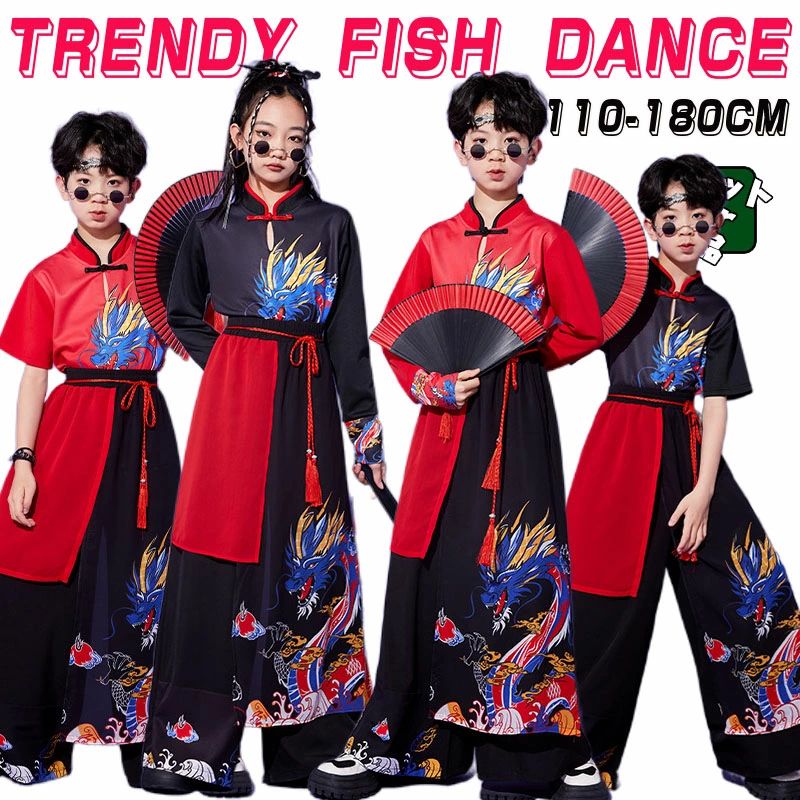 黒赤 龍柄 キッズ ダンス衣装 中華風 セットアップ ヒップホップ シャツ 男女兼用 トップス 半袖 長袖 パンツ 子供 演出服 和柄 キッズ ストリート ダンス衣装 男の子 女の子 ブラック 和風 ステージ衣装 110-180cm 発表会 団体服 ダンスウェア 派手 かっこいい チャイナ風 2,549 ~