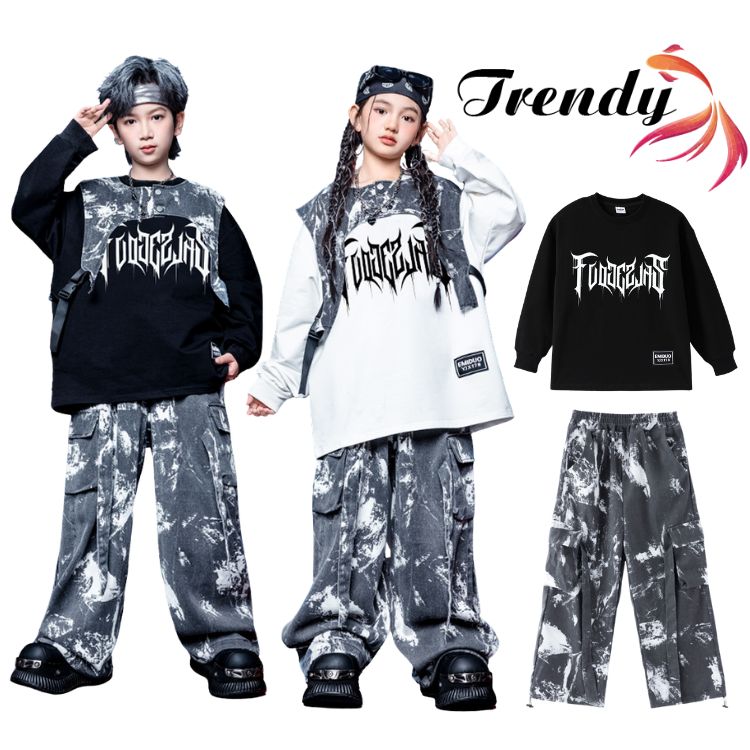 黒 白 ブラック トップス トレーナー ベスト パンツ 絞り染め カーゴパンツ 長袖 キッズ ダンス セットアップ 韓国 k-pop ヒップホップ 男の子 女の子 ギャル アイドル かっこいい カジュアル 子供服 ステージ衣装 jazz ジャズダンス 団体服 練習着 演出服 原宿系 110-180cm 2,549 ~