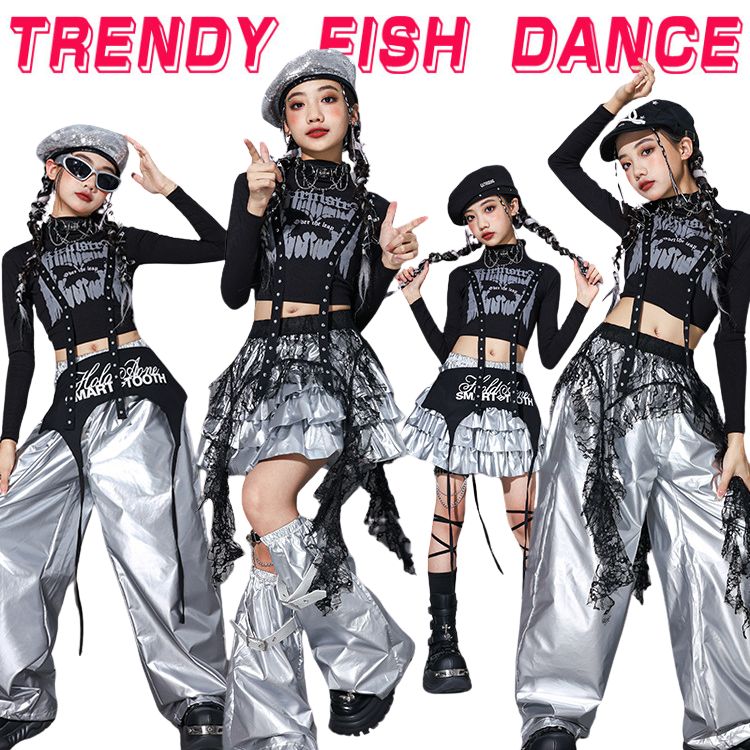 蝶柄 へそ出す レザー 長袖 ロングパンツ スカート ベレー帽 シルバー ブラック 銀 黒 キッズ ダンス セットアップ 韓国 k-pop ヒップホップ 女の子 ギャル かっこいい カジュアル 子供服 ステージ衣装 jazz ジャズダンス 団体服 練習着 演出服 原宿系 110-180cm 5,312 ~