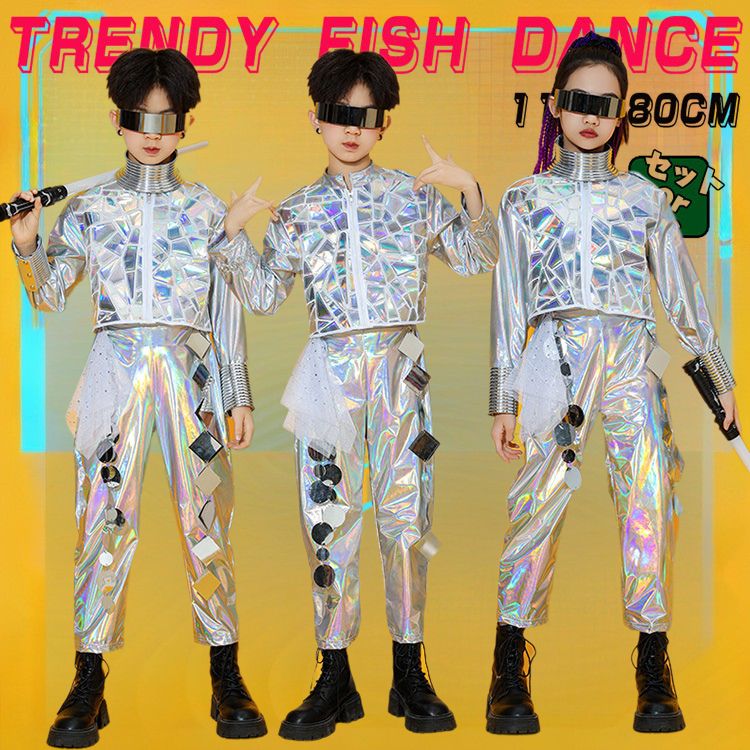 近未来風 サイバー風 メタリック スパンコール 光沢 キッズ ダンス衣装 ヒップホップ ステージ 衣装 子供 発表会 ダンス ウェア セットアップ ジャケット アウター 長袖 ロングパンツ ストーリー jazz 韓国k-pop 演出服 練習着 団体服 発表会 秋 110−180cm 5,459 ~