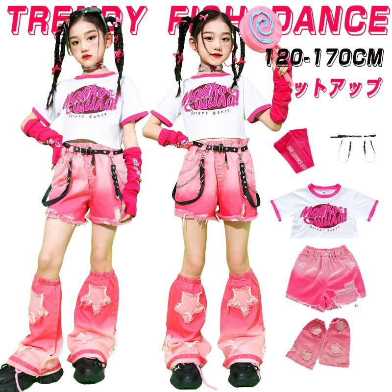 デニム ピンク ローズ キッズ ダンス衣装 セットアップ トップス 腕カバー パンツ 足カバー レッグウォーマー 女の子 タイダイ柄 ダンスウエア ステージ衣装 チアダンス チアガール チアリーダー ストレート ジャズダンス 団体服 発表会 演出服 応援団 原宿系 6,415 ~