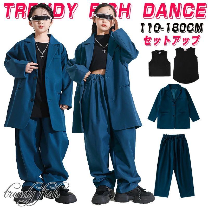 キッズ ダンス 衣装 セットアップ 長袖 ジャケット ロングパンツ 男の子 女の子 ネイビー スーツ風 韓国風 ダンス衣装 ヒップホップ ダンススーツ ジャズ ロック ダンス衣装 ゆったり目 ダボダボ ガールズ ボーイズ ステージ衣装 110 120 130 140 150 160 170 180 6,890 ~