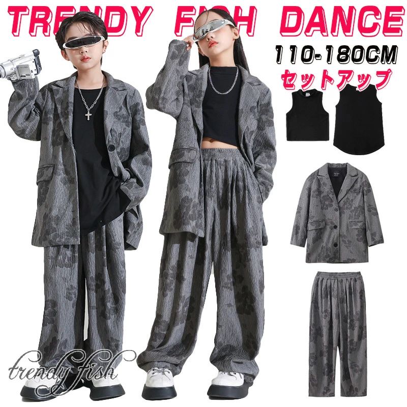 花柄 グレー キッズ ダンス衣装 セットアップ グレースーツ 大きいサイズ ゆったり 体型カバー ジャズダンス ヒップホップ 発表会 応援団 Urban Dance 韓国hiphop k-pop ジャケット 女の子 男の子 派手 レッスン着 おしゃれ 演出服 団体服 練習着 カジュアル ステージ衣装 2,430 ~