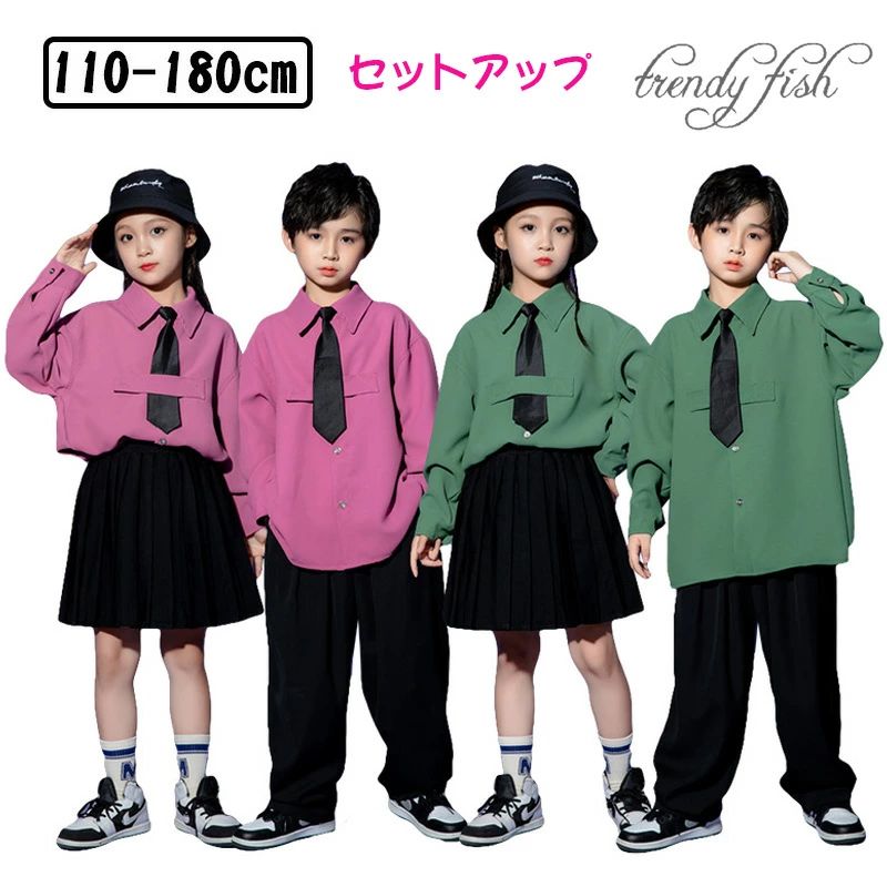 男の子 女の子 ダンス 衣装 ヒップホップ キッズ セットアップ ネクタイ付き HIPHOP 長袖 シャツ ゆるシャツ スカート ロングパンツ キッズ ダンス衣装 ゆったり ダボダボ 練習着 男の子 女の子 子供 ジャズダンス ステージ衣装 派手 チーム 団体 ダンス 保育園 4,568 ~