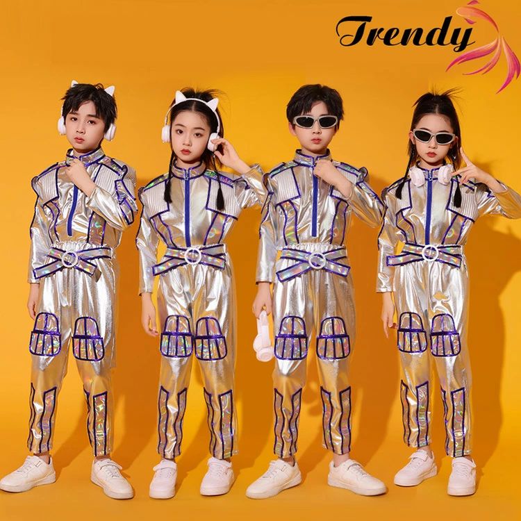 ロボットコスチューム 近未来風 サイバー風 長袖 ロングパンツ キラキラ キッズ ダンス セットアップ 韓国 k-pop ヒップホップ 男の子 女の子 ギャル アイドル かっこいい カジュアル 子供服 ステージ衣装 jazz ジャズダンス 団体服 練習着 演出服 原宿系 110-180cm 銀 4,570 ~