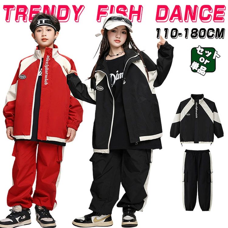 レッド ブラック ストリートファッション パンツ コート アスレジャー 男の子 女の子 上下セット 長袖 ベースボールシャツ シンプル 演出服 ダンスウェア チアダンス 応援団 セット 長袖 ドラム 演出服 発表会 K-POP 韓国 個性 hiphop jazz 演出会 4,095 ~