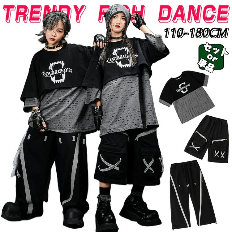 黒 数字柄 ダンス衣装 キッズ セットアップ ヒップホップ 上下セット 子供服 トップス ベスト パンツ ロング 半袖 かっこいい 男の子 女の子 韓国 k-pop ファッション 団体服 発表会 舞台 hiphop カジュアル 普段着 ストリート おしゃれ ストライプ 4,230 ~