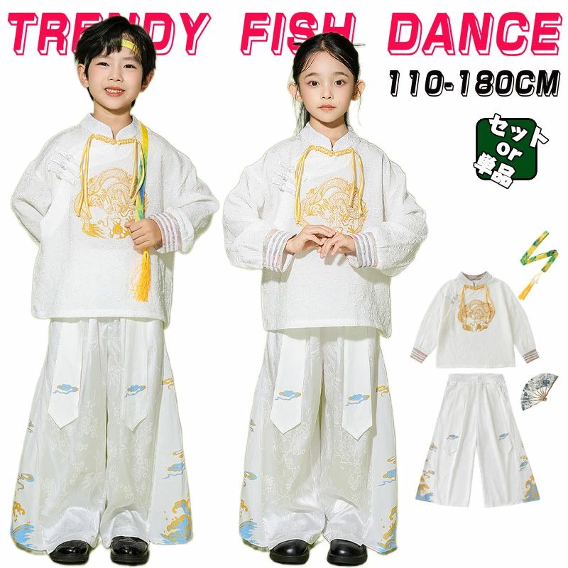 チャイナドレス 白 ホワイト 中華風 セットアップ 子供 ダンス 衣装 キッズ トップス パンツ ワンピース 龍柄 祥雲 チャイナ風 男の子 女の子 和風 姫袖 可愛い 華流 舞台 ステージ衣装 ジャズ ヒップホップ ダンスウェア 和柄 個性 学園祭 発表会 古典 ダンス 衣装 扇子 4,212 ~