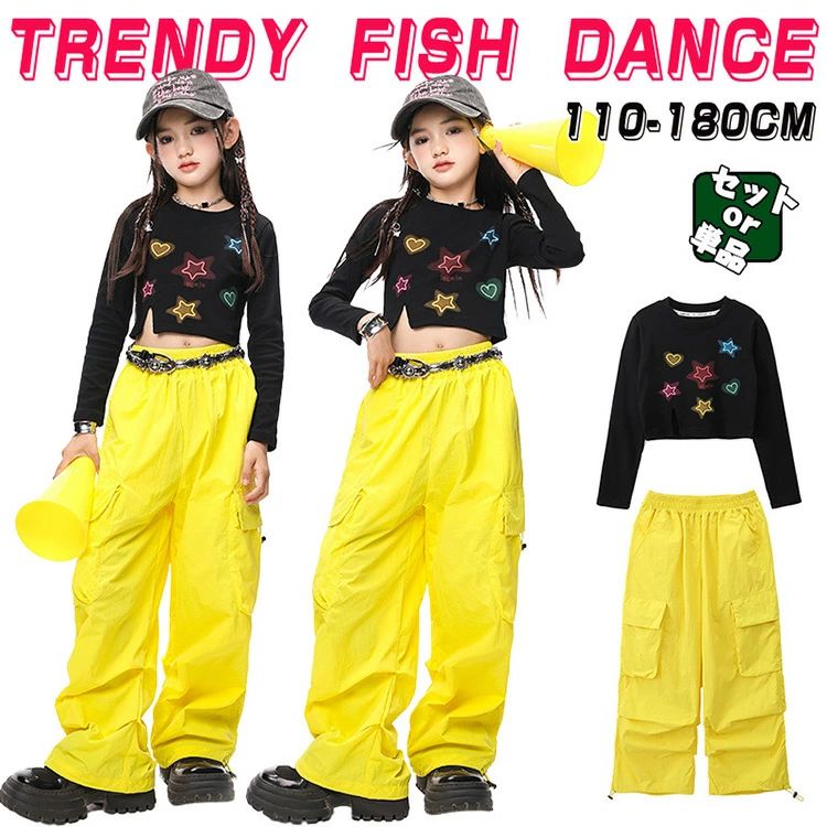 へそ出し トップス 長袖 イエロー ブラック 派手 女の子 ダンス衣装 キッズ K-POP 子供服 セットアップ ダンスウェア ドーパミン 韓国 個性 hiphop jazz 演出会 応援団 発表会 オシャレ 人気 おしゃれ 舞台効果抜群 4,309 ~