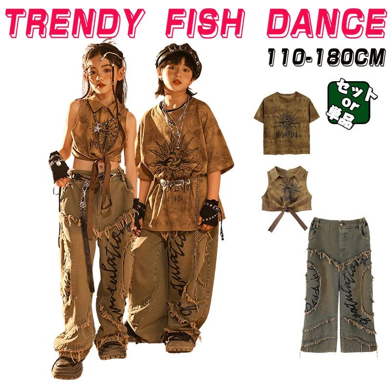 コーヒー キッズ ノースリーブトップス 半袖 長ズボン 韓国K-POP 女の子 男の子 演出服 舞台服 発表会 ポッピング jazz ジャズダンス ステージ レッスン着 練習着 子供服 かっこいい おしゃれ 雰囲気感 4,309 ~