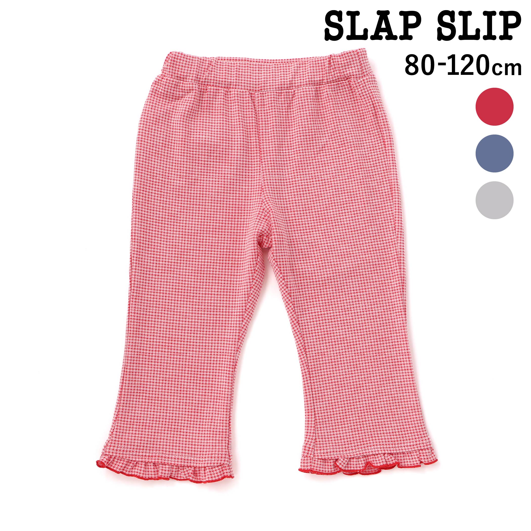 商品名 SLAP SLIP裾フリル7分丈デニムニットチェックレギンス(80~120cm) 商品番号 1809-81603 商品説明 -26SS-裾にふんわりと広がるフリルをあしらった、女の子らしさたっぷりのレギンス。 ■デザイン右後ろのポケットには小さなリボンを添えて、後ろ姿まで可愛い印象に仕上げました。 ブルーは伸びやかなデニムニットを使用し、カジュアルな雰囲気に。 レッド系とグレー系にはチェック柄のジャカード生地を採用し、温かみのある上品な表情を楽しめます。 デイリーからお出かけまで幅広く活躍する、コーデの主役になる一本です。 ■素材/機能デニムニットはデニムの見た目なのにふんわりした穿き心地が魅力。 ほんのり立体感のあるチェック柄ジャカード生地で温もりと上品さを感じる仕上がり。 それぞれの素材が持つ優しい風合いが、女の子らしいコーデをよりいっそう引き立ててくれます。 ウエストは総ゴム仕様のため、動き回る日にも快適で、着脱しやすいのも魅力です。 ※生地の特性上、色落ちや色移りする可能性があります。 ※淡色製品とあわせての洗濯・着用に十分ご注意ください。 ※柄の出方は生地の裁断により一点一点異なります。 ※後ろポケットあり。 26春夏アイテム【2026年2月のテーマ / Blooming Garden】楽しいことも、おいしい時間も、一緒に分け合うよろこび。 やさしい気持ちになれるハート柄や愛らしい動物たちのモチーフに、あたたかなカラーを散りばめて。 大切な人と想いを共有できる、やさしく幸せなコレクション。 【2026 SPRING SUMMER / Wishing you joy-喜びが訪れますように-】すてきな一日を願う気持ちをお洋服に込めて。 誰かを想うやさしさと、あたたかなぬくもりを感じながら、毎日が小さな幸せで満たされますように。 優しくてあたたかなイメージのコレクション。 【SLAP SLIP(スラップ スリップ)】〜子どもの欲しいをカタチに〜ヨーロッパのこどものように子どもらしい今しか着れないナチュラルなかわいさを提案どこか上品で清楚感漂うフレンチカジュアルはいつものコーディネートをさりげなく格上げ 素材 【ブルー】綿76% ポリエステル18% ポリウレタン6%,【レッド系、グレー系】レーヨン60% ポリエステル35% ポリウレタン5% 実寸 80cm:ウエスト20 パンツ丈34 裾幅12.5 わたり幅16.590cm:ウエスト21 パンツ丈37 裾幅13 わたり幅17100cm:ウエスト22 パンツ丈41.5 裾幅13.5 わたり幅17.5110cm:ウエスト23 パンツ丈47.5 裾幅14 わたり幅18.5120cm:ウエスト24 パンツ丈52.5 裾幅15 わたり幅20 ブランド SLAP SLIP カラー ブルー,レッド系,グレー系 原産国 中国 製造元 株式会社べべ(BEBE) メーカー希望小売価格はメーカー商品タグに基づいて掲載しています ▼カテゴリーから探す▼ SLAP SLIP 裾フリル7分丈デニムニットチェックレギンス(80~120cm) 子供服 子ども服 女の子 キッズ ギフト ブランド プレゼント スパッツ 春服 キッズ服 幼稚園 通園 通学 小学生 お出かけ 80cm 90cm 100cm 110cm 120cm 2,530 ~