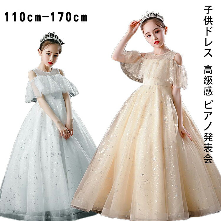 子供ドレス ピアノ発表会 ロングドレス シャンパン色 ゴールド 演奏会ドレス 女の子 キラキラドレス スパンコール 女児ドレス キレイめ パール 7,963 ~