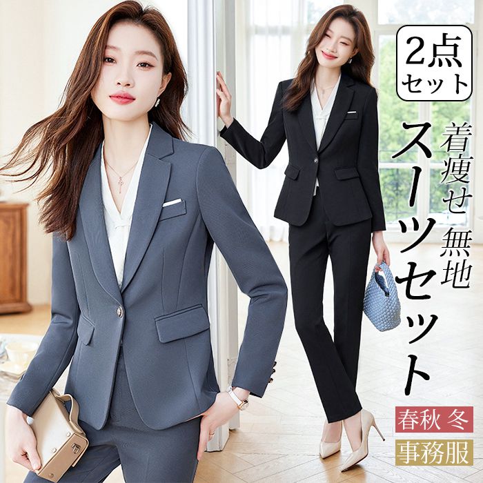 スーツセット レディース ビジネススーツ パンツセット 事務服 2点セット 着痩せ 無地 フォーマル オフィス 春秋 冬 大人 きれいめ 6,580 ~