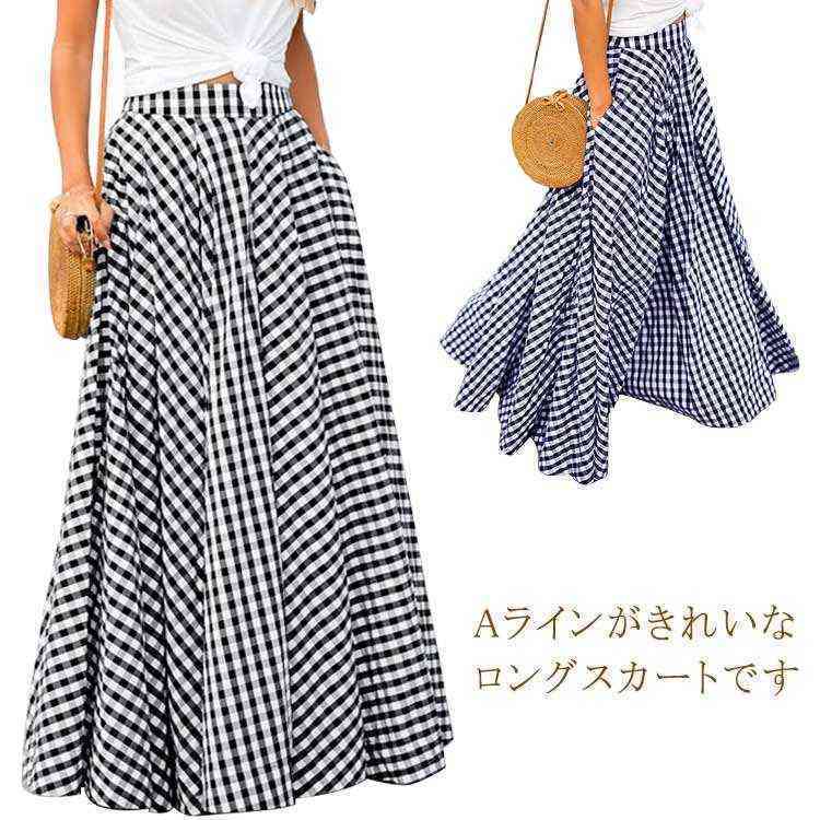 Aラインがきれいなロングスカートです。 ギンガムチェックが可愛いオフィスにもオススメです。 ウエストはゴムなので着心地も抜群。 ストンと落ちるレッグラインを拾わないシルエットできれいにすっきり見えます。 きれいめもカジュアルも着回し上手な万能アイテムで着?せと体型カバーをさらっとこなす優秀な一着です。 サイズS M L XL 2XL 3XL 4XL 5XLサイズについての説明【S】ウエスト69cm ヒップ168cm 着丈99cm 【M】ウエスト74cm ヒップ173cm 着丈100cm 【L】ウエスト79cm ヒップ178cm 着丈102cm 【XL】ウエスト84cm ヒップ183cm 着丈103cm 【2XL】ウエスト89cm ヒップ188cm 着丈105cm 【3XL】ウエスト94cm ヒップ193cm 着丈106cm 【4XL】ウエスト99cm ヒップ198cm 着丈108cm 【5XL】ウエスト104cm ヒップ203cm 着丈109cm素材ポリエステル色ブラック ブルー備考 ●サイズ詳細等の測り方はスタッフ間で統一、徹底はしておりますが、実寸は商品によって若干の誤差(1cm〜3cm )がある場合がございますので、予めご了承ください。 ●商品の色は、撮影時の光や、お客様のモニターの色具合などにより、実際の商品と異なる場合がございます。 あらかじめ、ご了承ください。 ●製品によっては、生地の特性上、洗濯時に縮む場合がございますので洗濯時はご注意下さいませ。 ▼色味の強い製品によっては他の衣類などに色移りする場合もございますので、速やかに(脱水、乾燥等)するようにお願いいたします。 ▼生地によっては摩擦や汗、雨などで濡れた時は、他の製品に移染する恐れがございますので、着用の際はご注意下さい。 ▼生地の特性上、やや匂いが強く感じられるものもございます。 数日のご使用や陰干しなどで気になる匂いはほとんど感じられなくなります。