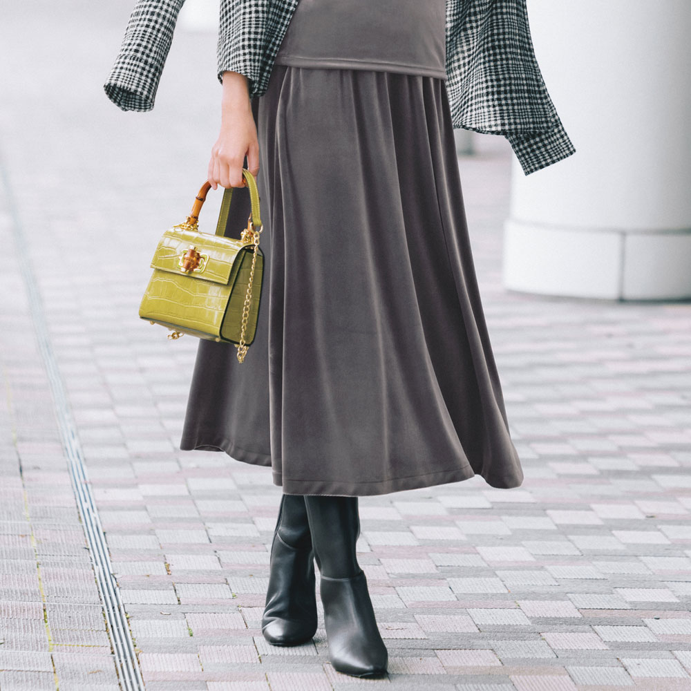ワザありアイテムでリュクスに決まる WEEKEND CASUALありのままの自分でいられる休日は、肩の力を抜きつつ、でもおしゃれに楽しみたい。 いつものカジュアルにひとワザ加えた、シンプルなのに上品に決まるアイテムをお届けします。 ベロア生地が映える美しいカッティング軽さとふくらみ感のある伸びやかなベロア生地を使った、楽な着心地ながらきれいに映えるスカート。 自然な光沢感と上品な落ち感に大人の雰囲気が漂います。 ゆとりのある着心地です。 ページ下部に画像の説明がございます。 一部別売りの商品もございますので、説明文ご確認のうえご注文ください。 >画像の説明はこちら<仕様・サイズこの商品はセール品のため返品できません■色:スティールグレー■素材:ポリエステル91・ポリウレタン9%■ウエストゴム仕様■原産国:日本製■生地の特性上、毛足の流れの方向によりアタリや色ムラのように見える場合があります。 ■サイズ記号はグレイコード独自のサイズです。 ◆サイズ(cm)【1】対応サイズ Mスカート総丈 84ウエスト 72ウエスト(適応) 64ヒップ(適応) 87【2】対応サイズ Lスカート総丈 87ウエスト 76ウエスト(適応) 69ヒップ(適応) 92【送料マーク:A】 この商品の販売価格には配送料880円(税込)が含まれています。 画像の説明コーディネート例コーディネート例伸びやかなジャージー生地は肌あたりも着心地も◎。 ベロアの光沢感で華やかに。 ギャザーを入れてヒップまわりにゆとりを出したデザイン。 ウエストはゴム仕様。 白か黒ではなく「グレイ」が持つ曖昧なニュアンスを愛し、美しい音色「コード」を組み合わせ、重ねていくようにファッションを楽しむことをコンセプトにしたブランド。 【クーポン配布 1月16日1:59迄】 GREYCHORD/グレイコード ベロア スカート(マリー)(日本製) スカート ファッション PC5638 11,880 ~