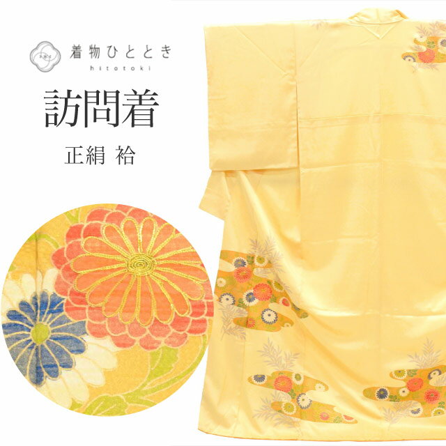\最大15%OFFクーポン+P5倍/ 【中古】 色無地 リサイクル着物 身丈147.5cm 裄丈62.5cm 正絹 未使用品 仕立て上がり 縮緬 SS 黄色系 風景文様 良品 [ 着物 中古 帯 リサイクル 振袖 浴衣 袴 和服 古着 ] 8,800 ~