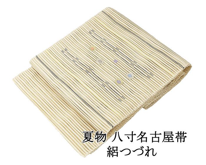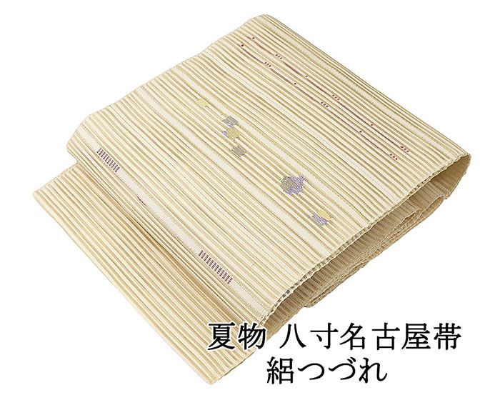 ■□■□■□■□■□■□■□■□■□■□■□■□ 【商品説明】 正絹・夏物八寸絽綴れ名古屋帯です。 単衣・夏着物の訪問着や付下げ・色無地・小紋など幅広くお使いいただけます。 おしゃれ着からフォーマルまで楽しめる涼しげな夏帯です。 ◆地色:淡いアイボリー(生成り)×藤紫・紅紫・金銀糸 他 ◆柄:横段幾何模様 ◆生地:正絹 ◆長さ:約3m65cm・幅:約30.5cm ◆ポイント(お太鼓)柄 ◆かがり/松葉仕立 ◆中国製 ■仕立済み■ ■□■□■□■□■□■□■□■□■□■□■□■□◆◇新品からリサイクル・中古まで。 。 着物や帯・和装小物が勢揃い。 。 ◆◇ 夏帯 名古屋帯 絽綴れ 正絹 新品 仕立て上がり アイボリー 横段 幾何 夏八寸帯 八寸 夏用 夏物 絽つづれ y5111 9,800 ~
