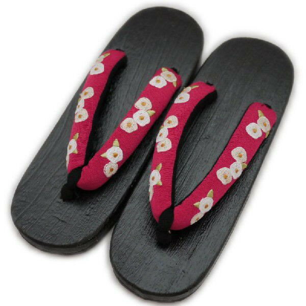 刺繍がとても素敵な桐下駄。 鼻緒が太めでやわらかいので、これなら初めて下駄を履く方でも足が痛くなりにくいと思います。 【色 柄】 台は黒い焼きの桐。 鼻緒はエンジ色のちりめん生地に白・黄色・グリーンの糸で椿の花柄が刺繍されています。 鼻緒の裏とツボは黒。 【サイズ】 フリー 22.5cm〜24.5cm。 (実寸24cm) かかとの高さ:3.5cm 滑りにくいように裏はゴムがはってあります。 鼻緒の調節可能 【材 質】 台:桐(木製)鼻緒:レーヨン100% 刺繍が素敵 やさしい履き心地の桐下駄 (エンジ系:椿柄) 2,376 ~