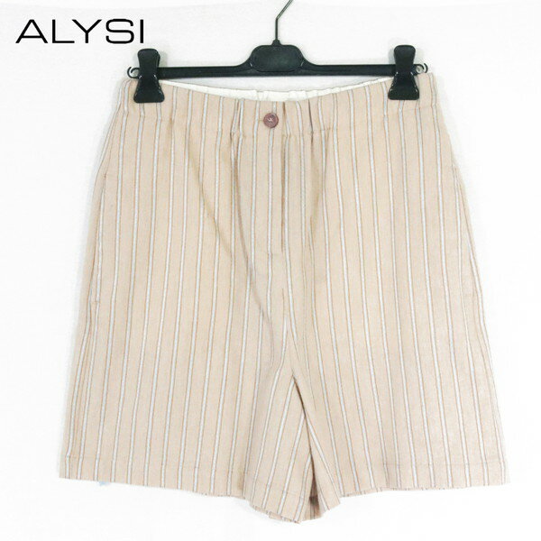 90%OFF 新品 アリジ ALYSI パンツ 42 EPT930 Lサイズ ベージュ レディース ショートパンツ キュロットパンツ ウール ストライプ柄 イタリア製 4,950 ~